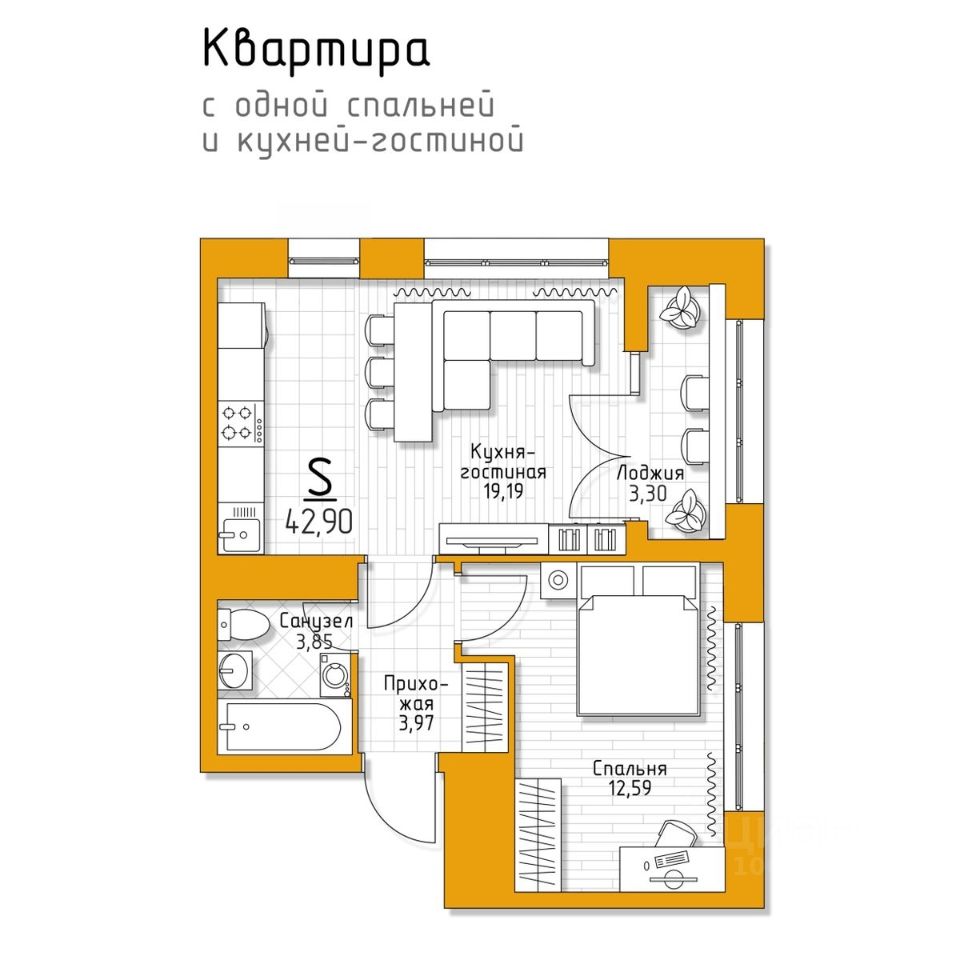 Продаётся 1-комнатная квартира в строящемся доме (Дом 7), срок сдачи: IV-кв. 2026, общей площадью 42.9 кв.м., на 2 этаже. Жилой комплекс "5 Баллов" от застройщика "СЗ Квартал" в поселке молодежный Тульской области.