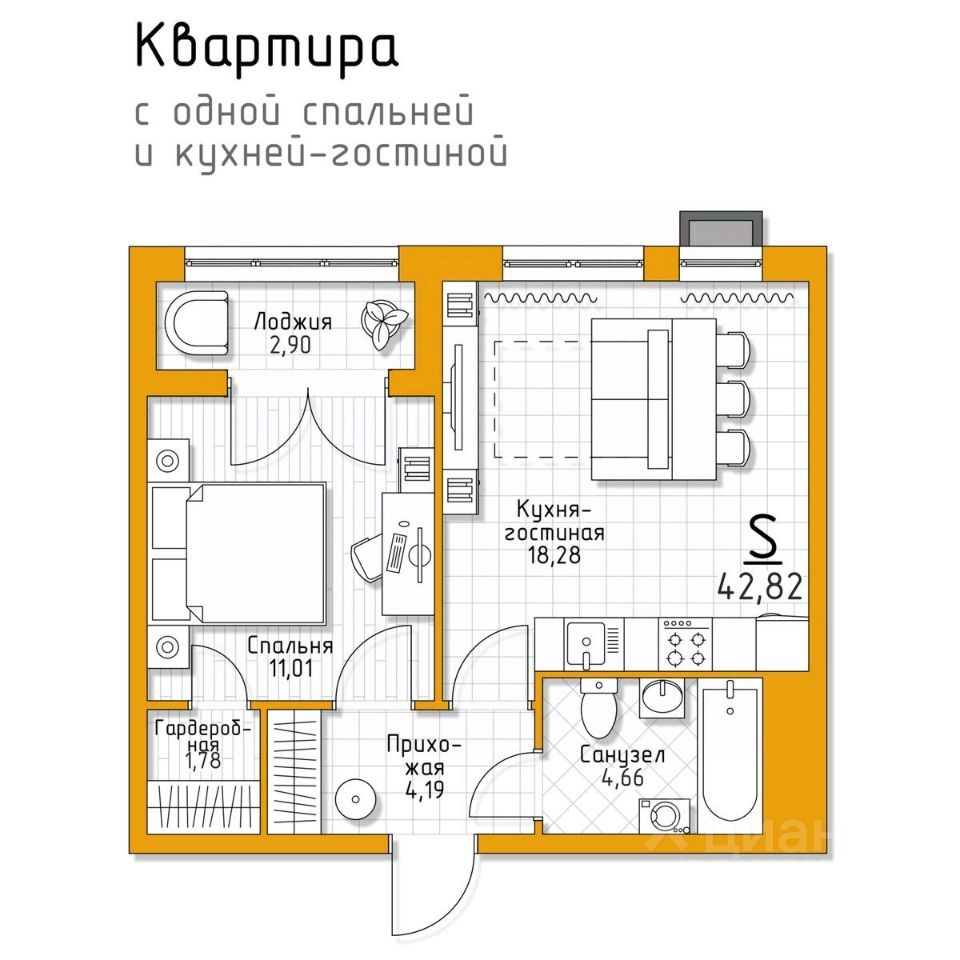 Продаётся 1-комнатная квартира в строящемся доме (Дом 10), срок сдачи: IV-кв. 2026, общей площадью 42.82 кв.м., на 2 этаже. Жилой комплекс "5 Баллов" от застройщика "СЗ Квартал" в поселке молодежный Тульской области.