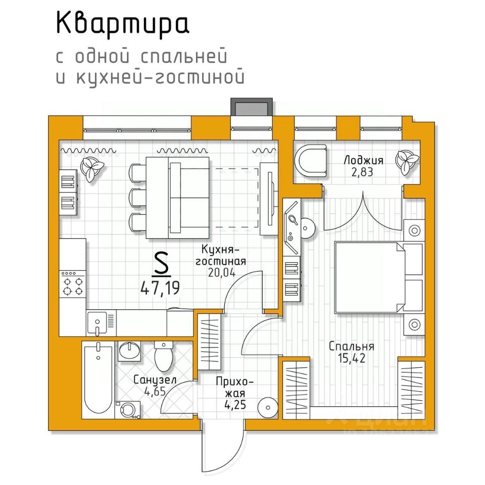 Продаётся 1-комнатная квартира в строящемся доме (Дом 10), срок сдачи: IV-кв. 2026, общей площадью 47.19 кв.м., на 2 этаже. Жилой комплекс "5 Баллов" от застройщика "СЗ Квартал" в поселке молодежный Тульской области.