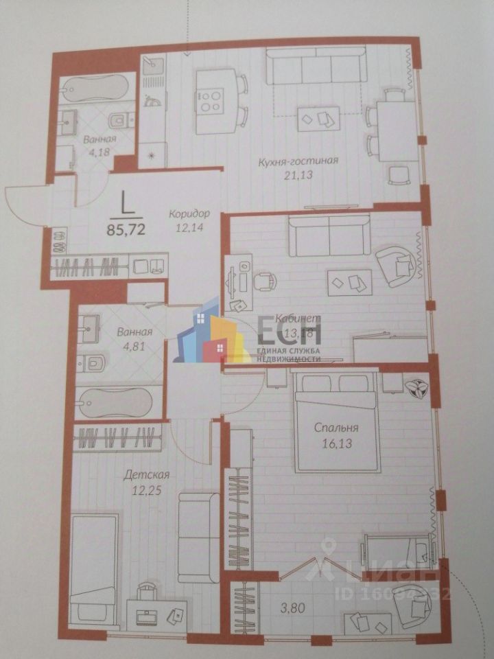 Номер в базе: 54728. В продаже шикарная 3-х комнатная квартира в лучшем ЖК города "Дома Цвета Кофе"!