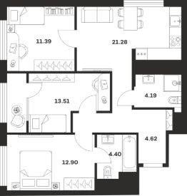 Продаётся 3-комнатная квартира в строящемся доме (2 этап), срок сдачи: II-кв. 2028, общей площадью 72.29 кв.м., на 18 этаже. Новый жилой комплекс "Парк Патриот" от застройщика "СЗ "Парк Патриот""