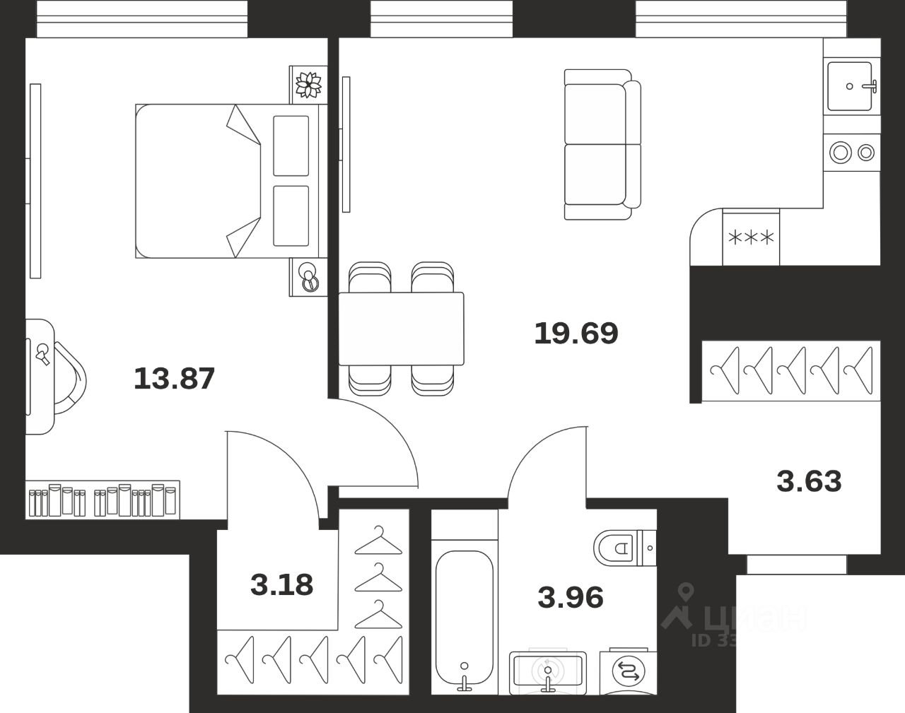 Общая площадь44,33 м²