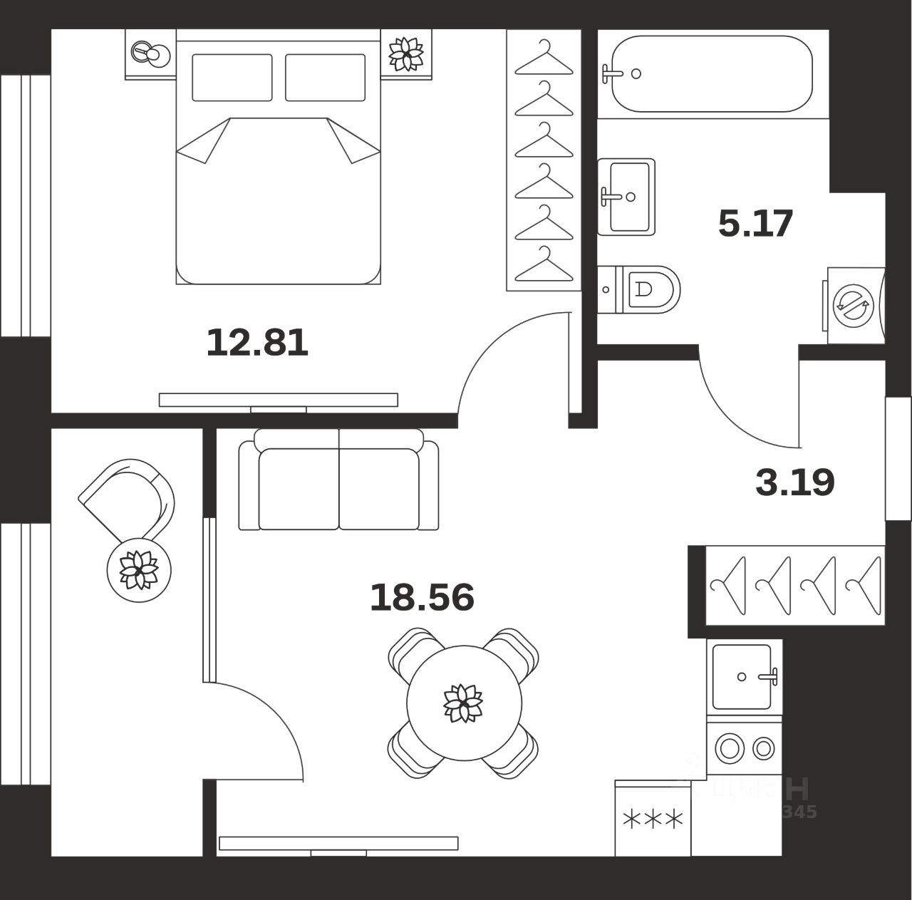 Общая площадь39,73 м²