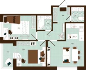 Продаётся 3-комнатная квартира в строящемся доме (Дом 28), срок сдачи: I-кв. 2027, общей площадью 55.7 кв.м., на 13 этаже. Расположение, транспортная доступность Новый жилой комплекс "Юго-Восточный" строится в Туле, в 3,5 км от центра города. Благодаря удачным транспортным развязкам, автолюбители смогут доехать до центральных кварталов примерно за 5 10 минут, составив наиболее быстрый и удобный маршрут с учетом загруженности дорог. Проблем с мобильностью не возникнет и у пассажиров общественного транспорта. Рядом с домом расположены остановки автобусов и маршрутных такси, которые быстро довезут до любого района города. Так, чтобы добраться до центра, следует дойти пешком до остановки "Медтехника", где останавливается маршрутное такси, доезжающее до центральных кварталов всего за 7 8 минут. Инфраструктура Район, где возводится новый жилой комплекс, активно застраивается, и сеть инфраструктуры сов временем будет расширяться. Но и сейчас все, что нужно для комфортной жизни в городе, находится недалеко от жилого комплекса. В шаговой доступности расположены продуктовые магазины: "Виктория", "Овощи-фрукты", Магазин рыбы и мяса птицы, магазин мяса и колбас "У Максима", супермаркеты "Дикси", "Пятерочка", "SPAR". Неподалеку находится гипермаркет "Линия", крупный торговый центр, в котором расположены отделения банков, гипермаркет "Глобус", салон оптики, мебельный магазин "Столплит", зоомагазин "Четыре лапы" и пр. В соседнем здании находится строительный гипермаркет "Леруа Мерлен", за ним крупный магазин товаров для спорта, туризма и активного отдыха "Декатлон".Недалеко от жилого комплекса открыты кафе и рестораны: кофейня "Bonape", пиццерия "Культура", кафе "Вкуснов", кафе быстрого обслуживания "Rapido", ресторан "У фонтана" и пр.В районе есть аптеки, поликлиники, диагностические центры. В шаговой доступности от жилого комплекса расположено несколько детских садиков, в том числе, садик комбинированного вида "Алые паруса". Есть дошкольные отделения, входящие в состав образовательных центров, Центры развития ребенка. Поблизости расположены средние школы, в том числе, школа для детей с ОВЗ. Рядом с жилым комплексом находится Тульская Духовная Семинария и Суворовское училище. Надежность застройщик: достраивает объект ООО Ин-Групп.АрхитектураЖилой комплекс будет представлен 19 монолитно-кирпичными корпусами переменной этажности, выполненными в едином архитектурном стиле. При строительстве ЖК "Юго-Восточный" применяются современные материалы высокого качества, которые обеспечивают надежность домов и комфортный микроклимат в помещениях. Каждая секция оснащается современными лифтами. Помещения общего пользования отделываются экологичными материалами. Квартиры предлагаются однокомнатные (от 43,9 кв. м), двухкомнатные (от 45,8 кв. м), трехкомнатные (от 60,4 кв. м) и четырехкомнатные (от 87,2 кв. м), а также уютные студии (от 28,9 кв. м).На внутренней территории проводится комплексное благоустройство: озеленение, организация игровых площадок, мест для отдыха и зан