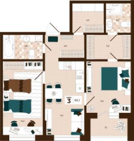Продаётся 3-комнатная квартира в строящемся доме (Дом 28), срок сдачи: I-кв. 2027, общей площадью 65.1 кв.м., на 13 этаже. Расположение, транспортная доступность Новый жилой комплекс "Юго-Восточный" строится в Туле, в 3,5 км от центра города. Благодаря удачным транспортным развязкам, автолюбители смогут доехать до центральных кварталов примерно за 5 10 минут, составив наиболее быстрый и удобный маршрут с учетом загруженности дорог. Проблем с мобильностью не возникнет и у пассажиров общественного транспорта. Рядом с домом расположены остановки автобусов и маршрутных такси, которые быстро довезут до любого района города. Так, чтобы добраться до центра, следует дойти пешком до остановки "Медтехника", где останавливается маршрутное такси, доезжающее до центральных кварталов всего за 7 8 минут. Инфраструктура Район, где возводится новый жилой комплекс, активно застраивается, и сеть инфраструктуры сов временем будет расширяться. Но и сейчас все, что нужно для комфортной жизни в городе, находится недалеко от жилого комплекса. В шаговой доступности расположены продуктовые магазины: "Виктория", "Овощи-фрукты", Магазин рыбы и мяса птицы, магазин мяса и колбас "У Максима", супермаркеты "Дикси", "Пятерочка", "SPAR". Неподалеку находится гипермаркет "Линия", крупный торговый центр, в котором расположены отделения банков, гипермаркет "Глобус", салон оптики, мебельный магазин "Столплит", зоомагазин "Четыре лапы" и пр. В соседнем здании находится строительный гипермаркет "Леруа Мерлен", за ним крупный магазин товаров для спорта, туризма и активного отдыха "Декатлон".Недалеко от жилого комплекса открыты кафе и рестораны: кофейня "Bonape", пиццерия "Культура", кафе "Вкуснов", кафе быстрого обслуживания "Rapido", ресторан "У фонтана" и пр.В районе есть аптеки, поликлиники, диагностические центры. В шаговой доступности от жилого комплекса расположено несколько детских садиков, в том числе, садик комбинированного вида "Алые паруса". Есть дошкольные отделения, входящие в состав образовательных центров, Центры развития ребенка. Поблизости расположены средние школы, в том числе, школа для детей с ОВЗ. Рядом с жилым комплексом находится Тульская Духовная Семинария и Суворовское училище. Надежность застройщик: достраивает объект ООО Ин-Групп.АрхитектураЖилой комплекс будет представлен 19 монолитно-кирпичными корпусами переменной этажности, выполненными в едином архитектурном стиле. При строительстве ЖК "Юго-Восточный" применяются современные материалы высокого качества, которые обеспечивают надежность домов и комфортный микроклимат в помещениях. Каждая секция оснащается современными лифтами. Помещения общего пользования отделываются экологичными материалами. Квартиры предлагаются однокомнатные (от 43,9 кв. м), двухкомнатные (от 45,8 кв. м), трехкомнатные (от 60,4 кв. м) и четырехкомнатные (от 87,2 кв. м), а также уютные студии (от 28,9 кв. м).На внутренней территории проводится комплексное благоустройство: озеленение, организация игровых площадок, мест для отдыха и зан