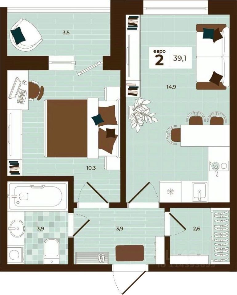 Продаётся 2-комнатная квартира в строящемся доме (Дом 28), срок сдачи: I-кв. 2027, общей площадью 39.1 кв.м., на 14 этаже. Расположение, транспортная доступность Новый жилой комплекс "Юго-Восточный" строится в Туле, в 3,5 км от центра города. Благодаря удачным транспортным развязкам, автолюбители смогут доехать до центральных кварталов примерно за 5 10 минут, составив наиболее быстрый и удобный маршрут с учетом загруженности дорог. Проблем с мобильностью не возникнет и у пассажиров общественного транспорта. Рядом с домом расположены остановки автобусов и маршрутных такси, которые быстро довезут до любого района города. Так, чтобы добраться до центра, следует дойти пешком до остановки "Медтехника", где останавливается маршрутное такси, доезжающее до центральных кварталов всего за 7 8 минут. Инфраструктура Район, где возводится новый жилой комплекс, активно застраивается, и сеть инфраструктуры сов временем будет расширяться. Но и сейчас все, что нужно для комфортной жизни в городе, находится недалеко от жилого комплекса. В шаговой доступности расположены продуктовые магазины: "Виктория", "Овощи-фрукты", Магазин рыбы и мяса птицы, магазин мяса и колбас "У Максима", супермаркеты "Дикси", "Пятерочка", "SPAR". Неподалеку находится гипермаркет "Линия", крупный торговый центр, в котором расположены отделения банков, гипермаркет "Глобус", салон оптики, мебельный магазин "Столплит", зоомагазин "Четыре лапы" и пр. В соседнем здании находится строительный гипермаркет "Леруа Мерлен", за ним крупный магазин товаров для спорта, туризма и активного отдыха "Декатлон".Недалеко от жилого комплекса открыты кафе и рестораны: кофейня "Bonape", пиццерия "Культура", кафе "Вкуснов", кафе быстрого обслуживания "Rapido", ресторан "У фонтана" и пр.В районе есть аптеки, поликлиники, диагностические центры. В шаговой доступности от жилого комплекса расположено несколько детских садиков, в том числе, садик комбинированного вида "Алые паруса". Есть дошкольные отделения, входящие в состав образовательных центров, Центры развития ребенка. Поблизости расположены средние школы, в том числе, школа для детей с ОВЗ. Рядом с жилым комплексом находится Тульская Духовная Семинария и Суворовское училище. Надежность застройщик: достраивает объект ООО Ин-Групп.АрхитектураЖилой комплекс будет представлен 19 монолитно-кирпичными корпусами переменной этажности, выполненными в едином архитектурном стиле. При строительстве ЖК "Юго-Восточный" применяются современные материалы высокого качества, которые обеспечивают надежность домов и комфортный микроклимат в помещениях. Каждая секция оснащается современными лифтами. Помещения общего пользования отделываются экологичными материалами. Квартиры предлагаются однокомнатные (от 43,9 кв. м), двухкомнатные (от 45,8 кв. м), трехкомнатные (от 60,4 кв. м) и четырехкомнатные (от 87,2 кв. м), а также уютные студии (от 28,9 кв. м).На внутренней территории проводится комплексное благоустройство: озеленение, организация игровых площадок, мест для отдыха и зан
