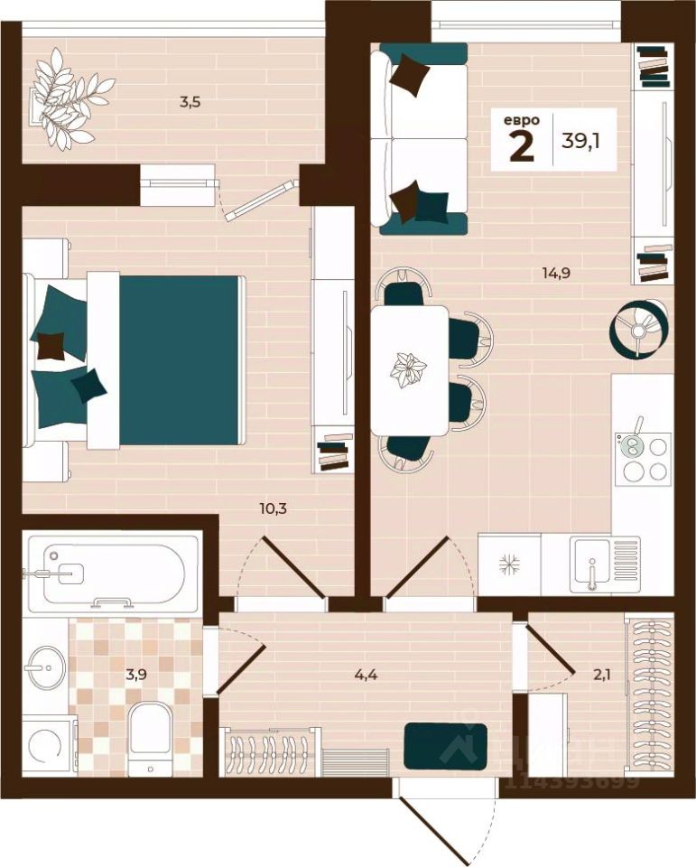 Продаётся 2-комнатная квартира в строящемся доме (Дом 28), срок сдачи: I-кв. 2027, общей площадью 39.1 кв.м., на 2 этаже. Расположение, транспортная доступность Новый жилой комплекс "Юго-Восточный" строится в Туле, в 3,5 км от центра города. Благодаря удачным транспортным развязкам, автолюбители смогут доехать до центральных кварталов примерно за 5 10 минут, составив наиболее быстрый и удобный маршрут с учетом загруженности дорог. Проблем с мобильностью не возникнет и у пассажиров общественного транспорта. Рядом с домом расположены остановки автобусов и маршрутных такси, которые быстро довезут до любого района города. Так, чтобы добраться до центра, следует дойти пешком до остановки "Медтехника", где останавливается маршрутное такси, доезжающее до центральных кварталов всего за 7 8 минут. Инфраструктура Район, где возводится новый жилой комплекс, активно застраивается, и сеть инфраструктуры сов временем будет расширяться. Но и сейчас все, что нужно для комфортной жизни в городе, находится недалеко от жилого комплекса. В шаговой доступности расположены продуктовые магазины: "Виктория", "Овощи-фрукты", Магазин рыбы и мяса птицы, магазин мяса и колбас "У Максима", супермаркеты "Дикси", "Пятерочка", "SPAR". Неподалеку находится гипермаркет "Линия", крупный торговый центр, в котором расположены отделения банков, гипермаркет "Глобус", салон оптики, мебельный магазин "Столплит", зоомагазин "Четыре лапы" и пр. В соседнем здании находится строительный гипермаркет "Леруа Мерлен", за ним крупный магазин товаров для спорта, туризма и активного отдыха "Декатлон".Недалеко от жилого комплекса открыты кафе и рестораны: кофейня "Bonape", пиццерия "Культура", кафе "Вкуснов", кафе быстрого обслуживания "Rapido", ресторан "У фонтана" и пр.В районе есть аптеки, поликлиники, диагностические центры. В шаговой доступности от жилого комплекса расположено несколько детских садиков, в том числе, садик комбинированного вида "Алые паруса". Есть дошкольные отделения, входящие в состав образовательных центров, Центры развития ребенка. Поблизости расположены средние школы, в том числе, школа для детей с ОВЗ. Рядом с жилым комплексом находится Тульская Духовная Семинария и Суворовское училище. Надежность застройщик: достраивает объект ООО Ин-Групп.АрхитектураЖилой комплекс будет представлен 19 монолитно-кирпичными корпусами переменной этажности, выполненными в едином архитектурном стиле. При строительстве ЖК "Юго-Восточный" применяются современные материалы высокого качества, которые обеспечивают надежность домов и комфортный микроклимат в помещениях. Каждая секция оснащается современными лифтами. Помещения общего пользования отделываются экологичными материалами. Квартиры предлагаются однокомнатные (от 43,9 кв. м), двухкомнатные (от 45,8 кв. м), трехкомнатные (от 60,4 кв. м) и четырехкомнатные (от 87,2 кв. м), а также уютные студии (от 28,9 кв. м).На внутренней территории проводится комплексное благоустройство: озеленение, организация игровых площадок, мест для отдыха и заня