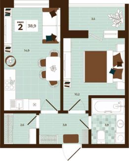 Продаётся 2-комнатная квартира в строящемся доме (Дом 28), срок сдачи: I-кв. 2027, общей площадью 38.9 кв.м., на 2 этаже. Расположение, транспортная доступность Новый жилой комплекс "Юго-Восточный" строится в Туле, в 3,5 км от центра города. Благодаря удачным транспортным развязкам, автолюбители смогут доехать до центральных кварталов примерно за 5 10 минут, составив наиболее быстрый и удобный маршрут с учетом загруженности дорог. Проблем с мобильностью не возникнет и у пассажиров общественного транспорта. Рядом с домом расположены остановки автобусов и маршрутных такси, которые быстро довезут до любого района города. Так, чтобы добраться до центра, следует дойти пешком до остановки "Медтехника", где останавливается маршрутное такси, доезжающее до центральных кварталов всего за 7 8 минут. Инфраструктура Район, где возводится новый жилой комплекс, активно застраивается, и сеть инфраструктуры сов временем будет расширяться. Но и сейчас все, что нужно для комфортной жизни в городе, находится недалеко от жилого комплекса. В шаговой доступности расположены продуктовые магазины: "Виктория", "Овощи-фрукты", Магазин рыбы и мяса птицы, магазин мяса и колбас "У Максима", супермаркеты "Дикси", "Пятерочка", "SPAR". Неподалеку находится гипермаркет "Линия", крупный торговый центр, в котором расположены отделения банков, гипермаркет "Глобус", салон оптики, мебельный магазин "Столплит", зоомагазин "Четыре лапы" и пр. В соседнем здании находится строительный гипермаркет "Леруа Мерлен", за ним крупный магазин товаров для спорта, туризма и активного отдыха "Декатлон".Недалеко от жилого комплекса открыты кафе и рестораны: кофейня "Bonape", пиццерия "Культура", кафе "Вкуснов", кафе быстрого обслуживания "Rapido", ресторан "У фонтана" и пр.В районе есть аптеки, поликлиники, диагностические центры. В шаговой доступности от жилого комплекса расположено несколько детских садиков, в том числе, садик комбинированного вида "Алые паруса". Есть дошкольные отделения, входящие в состав образовательных центров, Центры развития ребенка. Поблизости расположены средние школы, в том числе, школа для детей с ОВЗ. Рядом с жилым комплексом находится Тульская Духовная Семинария и Суворовское училище. Надежность застройщик: достраивает объект ООО Ин-Групп.АрхитектураЖилой комплекс будет представлен 19 монолитно-кирпичными корпусами переменной этажности, выполненными в едином архитектурном стиле. При строительстве ЖК "Юго-Восточный" применяются современные материалы высокого качества, которые обеспечивают надежность домов и комфортный микроклимат в помещениях. Каждая секция оснащается современными лифтами. Помещения общего пользования отделываются экологичными материалами. Квартиры предлагаются однокомнатные (от 43,9 кв. м), двухкомнатные (от 45,8 кв. м), трехкомнатные (от 60,4 кв. м) и четырехкомнатные (от 87,2 кв. м), а также уютные студии (от 28,9 кв. м).На внутренней территории проводится комплексное благоустройство: озеленение, организация игровых площадок, мест для отдыха и заня