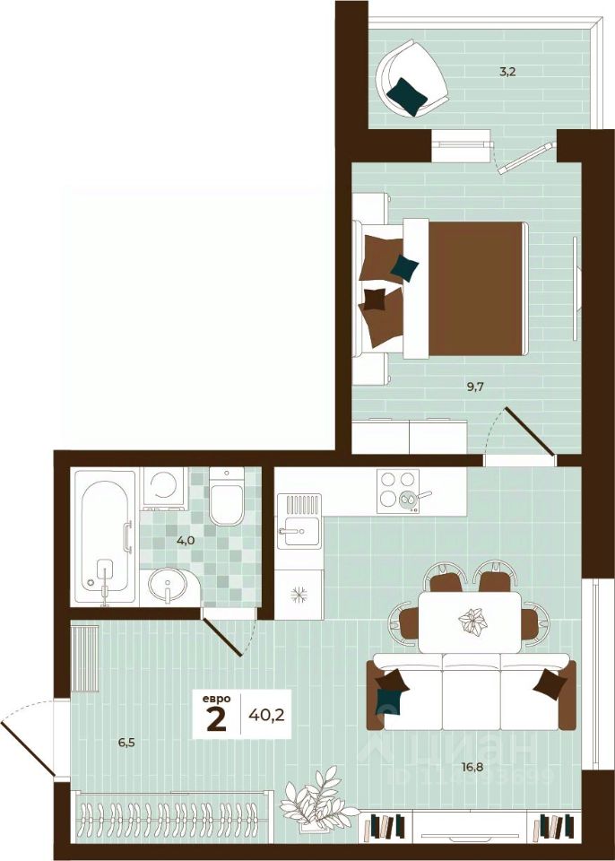 Продаётся 2-комнатная квартира в строящемся доме (Дом 28), срок сдачи: I-кв. 2027, общей площадью 40.2 кв.м., на 11 этаже. Расположение, транспортная доступность Новый жилой комплекс "Юго-Восточный" строится в Туле, в 3,5 км от центра города. Благодаря удачным транспортным развязкам, автолюбители смогут доехать до центральных кварталов примерно за 5 10 минут, составив наиболее быстрый и удобный маршрут с учетом загруженности дорог. Проблем с мобильностью не возникнет и у пассажиров общественного транспорта. Рядом с домом расположены остановки автобусов и маршрутных такси, которые быстро довезут до любого района города. Так, чтобы добраться до центра, следует дойти пешком до остановки "Медтехника", где останавливается маршрутное такси, доезжающее до центральных кварталов всего за 7 8 минут. Инфраструктура Район, где возводится новый жилой комплекс, активно застраивается, и сеть инфраструктуры сов временем будет расширяться. Но и сейчас все, что нужно для комфортной жизни в городе, находится недалеко от жилого комплекса. В шаговой доступности расположены продуктовые магазины: "Виктория", "Овощи-фрукты", Магазин рыбы и мяса птицы, магазин мяса и колбас "У Максима", супермаркеты "Дикси", "Пятерочка", "SPAR". Неподалеку находится гипермаркет "Линия", крупный торговый центр, в котором расположены отделения банков, гипермаркет "Глобус", салон оптики, мебельный магазин "Столплит", зоомагазин "Четыре лапы" и пр. В соседнем здании находится строительный гипермаркет "Леруа Мерлен", за ним крупный магазин товаров для спорта, туризма и активного отдыха "Декатлон".Недалеко от жилого комплекса открыты кафе и рестораны: кофейня "Bonape", пиццерия "Культура", кафе "Вкуснов", кафе быстрого обслуживания "Rapido", ресторан "У фонтана" и пр.В районе есть аптеки, поликлиники, диагностические центры. В шаговой доступности от жилого комплекса расположено несколько детских садиков, в том числе, садик комбинированного вида "Алые паруса". Есть дошкольные отделения, входящие в состав образовательных центров, Центры развития ребенка. Поблизости расположены средние школы, в том числе, школа для детей с ОВЗ. Рядом с жилым комплексом находится Тульская Духовная Семинария и Суворовское училище. Надежность застройщик: достраивает объект ООО Ин-Групп.АрхитектураЖилой комплекс будет представлен 19 монолитно-кирпичными корпусами переменной этажности, выполненными в едином архитектурном стиле. При строительстве ЖК "Юго-Восточный" применяются современные материалы высокого качества, которые обеспечивают надежность домов и комфортный микроклимат в помещениях. Каждая секция оснащается современными лифтами. Помещения общего пользования отделываются экологичными материалами. Квартиры предлагаются однокомнатные (от 43,9 кв. м), двухкомнатные (от 45,8 кв. м), трехкомнатные (от 60,4 кв. м) и четырехкомнатные (от 87,2 кв. м), а также уютные студии (от 28,9 кв. м).На внутренней территории проводится комплексное благоустройство: озеленение, организация игровых площадок, мест для отдыха и зан
