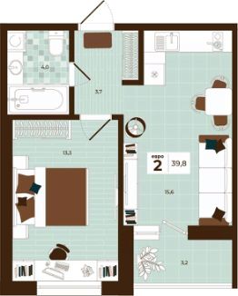 Продаётся 2-комнатная квартира в строящемся доме (Дом 28), срок сдачи: I-кв. 2027, общей площадью 39.8 кв.м., на 12 этаже. Расположение, транспортная доступность Новый жилой комплекс "Юго-Восточный" строится в Туле, в 3,5 км от центра города. Благодаря удачным транспортным развязкам, автолюбители смогут доехать до центральных кварталов примерно за 5 10 минут, составив наиболее быстрый и удобный маршрут с учетом загруженности дорог. Проблем с мобильностью не возникнет и у пассажиров общественного транспорта. Рядом с домом расположены остановки автобусов и маршрутных такси, которые быстро довезут до любого района города. Так, чтобы добраться до центра, следует дойти пешком до остановки "Медтехника", где останавливается маршрутное такси, доезжающее до центральных кварталов всего за 7 8 минут. Инфраструктура Район, где возводится новый жилой комплекс, активно застраивается, и сеть инфраструктуры сов временем будет расширяться. Но и сейчас все, что нужно для комфортной жизни в городе, находится недалеко от жилого комплекса. В шаговой доступности расположены продуктовые магазины: "Виктория", "Овощи-фрукты", Магазин рыбы и мяса птицы, магазин мяса и колбас "У Максима", супермаркеты "Дикси", "Пятерочка", "SPAR". Неподалеку находится гипермаркет "Линия", крупный торговый центр, в котором расположены отделения банков, гипермаркет "Глобус", салон оптики, мебельный магазин "Столплит", зоомагазин "Четыре лапы" и пр. В соседнем здании находится строительный гипермаркет "Леруа Мерлен", за ним крупный магазин товаров для спорта, туризма и активного отдыха "Декатлон".Недалеко от жилого комплекса открыты кафе и рестораны: кофейня "Bonape", пиццерия "Культура", кафе "Вкуснов", кафе быстрого обслуживания "Rapido", ресторан "У фонтана" и пр.В районе есть аптеки, поликлиники, диагностические центры. В шаговой доступности от жилого комплекса расположено несколько детских садиков, в том числе, садик комбинированного вида "Алые паруса". Есть дошкольные отделения, входящие в состав образовательных центров, Центры развития ребенка. Поблизости расположены средние школы, в том числе, школа для детей с ОВЗ. Рядом с жилым комплексом находится Тульская Духовная Семинария и Суворовское училище. Надежность застройщик: достраивает объект ООО Ин-Групп.АрхитектураЖилой комплекс будет представлен 19 монолитно-кирпичными корпусами переменной этажности, выполненными в едином архитектурном стиле. При строительстве ЖК "Юго-Восточный" применяются современные материалы высокого качества, которые обеспечивают надежность домов и комфортный микроклимат в помещениях. Каждая секция оснащается современными лифтами. Помещения общего пользования отделываются экологичными материалами. Квартиры предлагаются однокомнатные (от 43,9 кв. м), двухкомнатные (от 45,8 кв. м), трехкомнатные (от 60,4 кв. м) и четырехкомнатные (от 87,2 кв. м), а также уютные студии (от 28,9 кв. м).На внутренней территории проводится комплексное благоустройство: озеленение, организация игровых площадок, мест для отдыха и зан