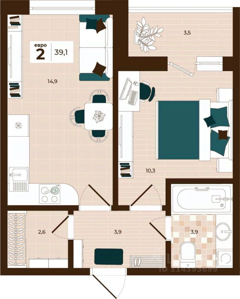 Продаётся 2-комнатная квартира в строящемся доме (Дом 28), срок сдачи: I-кв. 2027, общей площадью 39.1 кв.м., на 2 этаже. Расположение, транспортная доступность Новый жилой комплекс "Юго-Восточный" строится в Туле, в 3,5 км от центра города. Благодаря удачным транспортным развязкам, автолюбители смогут доехать до центральных кварталов примерно за 5 10 минут, составив наиболее быстрый и удобный маршрут с учетом загруженности дорог. Проблем с мобильностью не возникнет и у пассажиров общественного транспорта. Рядом с домом расположены остановки автобусов и маршрутных такси, которые быстро довезут до любого района города. Так, чтобы добраться до центра, следует дойти пешком до остановки "Медтехника", где останавливается маршрутное такси, доезжающее до центральных кварталов всего за 7 8 минут. Инфраструктура Район, где возводится новый жилой комплекс, активно застраивается, и сеть инфраструктуры сов временем будет расширяться. Но и сейчас все, что нужно для комфортной жизни в городе, находится недалеко от жилого комплекса. В шаговой доступности расположены продуктовые магазины: "Виктория", "Овощи-фрукты", Магазин рыбы и мяса птицы, магазин мяса и колбас "У Максима", супермаркеты "Дикси", "Пятерочка", "SPAR". Неподалеку находится гипермаркет "Линия", крупный торговый центр, в котором расположены отделения банков, гипермаркет "Глобус", салон оптики, мебельный магазин "Столплит", зоомагазин "Четыре лапы" и пр. В соседнем здании находится строительный гипермаркет "Леруа Мерлен", за ним крупный магазин товаров для спорта, туризма и активного отдыха "Декатлон".Недалеко от жилого комплекса открыты кафе и рестораны: кофейня "Bonape", пиццерия "Культура", кафе "Вкуснов", кафе быстрого обслуживания "Rapido", ресторан "У фонтана" и пр.В районе есть аптеки, поликлиники, диагностические центры. В шаговой доступности от жилого комплекса расположено несколько детских садиков, в том числе, садик комбинированного вида "Алые паруса". Есть дошкольные отделения, входящие в состав образовательных центров, Центры развития ребенка. Поблизости расположены средние школы, в том числе, школа для детей с ОВЗ. Рядом с жилым комплексом находится Тульская Духовная Семинария и Суворовское училище. Надежность застройщик: достраивает объект ООО Ин-Групп.АрхитектураЖилой комплекс будет представлен 19 монолитно-кирпичными корпусами переменной этажности, выполненными в едином архитектурном стиле. При строительстве ЖК "Юго-Восточный" применяются современные материалы высокого качества, которые обеспечивают надежность домов и комфортный микроклимат в помещениях. Каждая секция оснащается современными лифтами. Помещения общего пользования отделываются экологичными материалами. Квартиры предлагаются однокомнатные (от 43,9 кв. м), двухкомнатные (от 45,8 кв. м), трехкомнатные (от 60,4 кв. м) и четырехкомнатные (от 87,2 кв. м), а также уютные студии (от 28,9 кв. м).На внутренней территории проводится комплексное благоустройство: озеленение, организация игровых площадок, мест для отдыха и заня