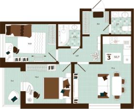 Продаётся 3-комнатная квартира в строящемся доме (Дом 28), срок сдачи: I-кв. 2027, общей площадью 55.7 кв.м., на 7 этаже. Расположение, транспортная доступность Новый жилой комплекс "Юго-Восточный" строится в Туле, в 3,5 км от центра города. Благодаря удачным транспортным развязкам, автолюбители смогут доехать до центральных кварталов примерно за 5 10 минут, составив наиболее быстрый и удобный маршрут с учетом загруженности дорог. Проблем с мобильностью не возникнет и у пассажиров общественного транспорта. Рядом с домом расположены остановки автобусов и маршрутных такси, которые быстро довезут до любого района города. Так, чтобы добраться до центра, следует дойти пешком до остановки "Медтехника", где останавливается маршрутное такси, доезжающее до центральных кварталов всего за 7 8 минут. Инфраструктура Район, где возводится новый жилой комплекс, активно застраивается, и сеть инфраструктуры сов временем будет расширяться. Но и сейчас все, что нужно для комфортной жизни в городе, находится недалеко от жилого комплекса. В шаговой доступности расположены продуктовые магазины: "Виктория", "Овощи-фрукты", Магазин рыбы и мяса птицы, магазин мяса и колбас "У Максима", супермаркеты "Дикси", "Пятерочка", "SPAR". Неподалеку находится гипермаркет "Линия", крупный торговый центр, в котором расположены отделения банков, гипермаркет "Глобус", салон оптики, мебельный магазин "Столплит", зоомагазин "Четыре лапы" и пр. В соседнем здании находится строительный гипермаркет "Леруа Мерлен", за ним крупный магазин товаров для спорта, туризма и активного отдыха "Декатлон".Недалеко от жилого комплекса открыты кафе и рестораны: кофейня "Bonape", пиццерия "Культура", кафе "Вкуснов", кафе быстрого обслуживания "Rapido", ресторан "У фонтана" и пр.В районе есть аптеки, поликлиники, диагностические центры. В шаговой доступности от жилого комплекса расположено несколько детских садиков, в том числе, садик комбинированного вида "Алые паруса". Есть дошкольные отделения, входящие в состав образовательных центров, Центры развития ребенка. Поблизости расположены средние школы, в том числе, школа для детей с ОВЗ. Рядом с жилым комплексом находится Тульская Духовная Семинария и Суворовское училище. Надежность застройщик: достраивает объект ООО Ин-Групп.АрхитектураЖилой комплекс будет представлен 19 монолитно-кирпичными корпусами переменной этажности, выполненными в едином архитектурном стиле. При строительстве ЖК "Юго-Восточный" применяются современные материалы высокого качества, которые обеспечивают надежность домов и комфортный микроклимат в помещениях. Каждая секция оснащается современными лифтами. Помещения общего пользования отделываются экологичными материалами. Квартиры предлагаются однокомнатные (от 43,9 кв. м), двухкомнатные (от 45,8 кв. м), трехкомнатные (от 60,4 кв. м) и четырехкомнатные (от 87,2 кв. м), а также уютные студии (от 28,9 кв. м).На внутренней территории проводится комплексное благоустройство: озеленение, организация игровых площадок, мест для отдыха и заня