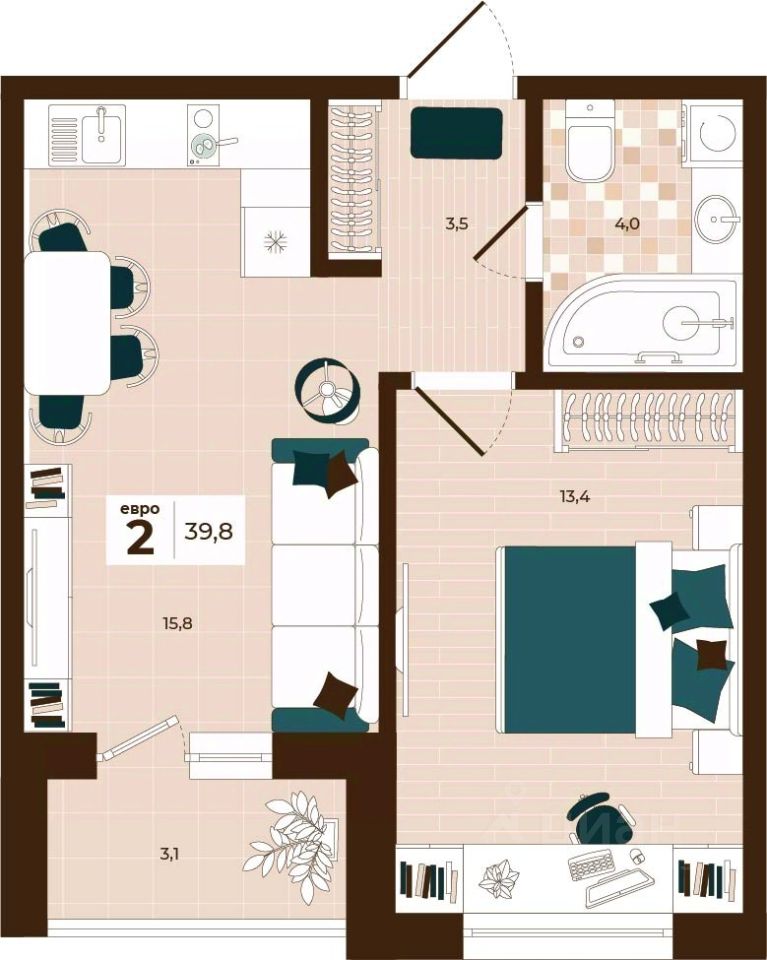 Продаётся 2-комнатная квартира в строящемся доме (Дом 28), срок сдачи: I-кв. 2027, общей площадью 39.8 кв.м., на 13 этаже. Расположение, транспортная доступность Новый жилой комплекс "Юго-Восточный" строится в Туле, в 3,5 км от центра города. Благодаря удачным транспортным развязкам, автолюбители смогут доехать до центральных кварталов примерно за 5 10 минут, составив наиболее быстрый и удобный маршрут с учетом загруженности дорог. Проблем с мобильностью не возникнет и у пассажиров общественного транспорта. Рядом с домом расположены остановки автобусов и маршрутных такси, которые быстро довезут до любого района города. Так, чтобы добраться до центра, следует дойти пешком до остановки "Медтехника", где останавливается маршрутное такси, доезжающее до центральных кварталов всего за 7 8 минут. Инфраструктура Район, где возводится новый жилой комплекс, активно застраивается, и сеть инфраструктуры сов временем будет расширяться. Но и сейчас все, что нужно для комфортной жизни в городе, находится недалеко от жилого комплекса. В шаговой доступности расположены продуктовые магазины: "Виктория", "Овощи-фрукты", Магазин рыбы и мяса птицы, магазин мяса и колбас "У Максима", супермаркеты "Дикси", "Пятерочка", "SPAR". Неподалеку находится гипермаркет "Линия", крупный торговый центр, в котором расположены отделения банков, гипермаркет "Глобус", салон оптики, мебельный магазин "Столплит", зоомагазин "Четыре лапы" и пр. В соседнем здании находится строительный гипермаркет "Леруа Мерлен", за ним крупный магазин товаров для спорта, туризма и активного отдыха "Декатлон".Недалеко от жилого комплекса открыты кафе и рестораны: кофейня "Bonape", пиццерия "Культура", кафе "Вкуснов", кафе быстрого обслуживания "Rapido", ресторан "У фонтана" и пр.В районе есть аптеки, поликлиники, диагностические центры. В шаговой доступности от жилого комплекса расположено несколько детских садиков, в том числе, садик комбинированного вида "Алые паруса". Есть дошкольные отделения, входящие в состав образовательных центров, Центры развития ребенка. Поблизости расположены средние школы, в том числе, школа для детей с ОВЗ. Рядом с жилым комплексом находится Тульская Духовная Семинария и Суворовское училище. Надежность застройщик: достраивает объект ООО Ин-Групп.АрхитектураЖилой комплекс будет представлен 19 монолитно-кирпичными корпусами переменной этажности, выполненными в едином архитектурном стиле. При строительстве ЖК "Юго-Восточный" применяются современные материалы высокого качества, которые обеспечивают надежность домов и комфортный микроклимат в помещениях. Каждая секция оснащается современными лифтами. Помещения общего пользования отделываются экологичными материалами. Квартиры предлагаются однокомнатные (от 43,9 кв. м), двухкомнатные (от 45,8 кв. м), трехкомнатные (от 60,4 кв. м) и четырехкомнатные (от 87,2 кв. м), а также уютные студии (от 28,9 кв. м).На внутренней территории проводится комплексное благоустройство: озеленение, организация игровых площадок, мест для отдыха и зан