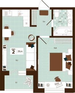Продаётся 2-комнатная квартира в строящемся доме (Дом 28), срок сдачи: I-кв. 2027, общей площадью 39.4 кв.м., на 13 этаже. Расположение, транспортная доступность Новый жилой комплекс "Юго-Восточный" строится в Туле, в 3,5 км от центра города. Благодаря удачным транспортным развязкам, автолюбители смогут доехать до центральных кварталов примерно за 5 10 минут, составив наиболее быстрый и удобный маршрут с учетом загруженности дорог. Проблем с мобильностью не возникнет и у пассажиров общественного транспорта. Рядом с домом расположены остановки автобусов и маршрутных такси, которые быстро довезут до любого района города. Так, чтобы добраться до центра, следует дойти пешком до остановки "Медтехника", где останавливается маршрутное такси, доезжающее до центральных кварталов всего за 7 8 минут. Инфраструктура Район, где возводится новый жилой комплекс, активно застраивается, и сеть инфраструктуры сов временем будет расширяться. Но и сейчас все, что нужно для комфортной жизни в городе, находится недалеко от жилого комплекса. В шаговой доступности расположены продуктовые магазины: "Виктория", "Овощи-фрукты", Магазин рыбы и мяса птицы, магазин мяса и колбас "У Максима", супермаркеты "Дикси", "Пятерочка", "SPAR". Неподалеку находится гипермаркет "Линия", крупный торговый центр, в котором расположены отделения банков, гипермаркет "Глобус", салон оптики, мебельный магазин "Столплит", зоомагазин "Четыре лапы" и пр. В соседнем здании находится строительный гипермаркет "Леруа Мерлен", за ним крупный магазин товаров для спорта, туризма и активного отдыха "Декатлон".Недалеко от жилого комплекса открыты кафе и рестораны: кофейня "Bonape", пиццерия "Культура", кафе "Вкуснов", кафе быстрого обслуживания "Rapido", ресторан "У фонтана" и пр.В районе есть аптеки, поликлиники, диагностические центры. В шаговой доступности от жилого комплекса расположено несколько детских садиков, в том числе, садик комбинированного вида "Алые паруса". Есть дошкольные отделения, входящие в состав образовательных центров, Центры развития ребенка. Поблизости расположены средние школы, в том числе, школа для детей с ОВЗ. Рядом с жилым комплексом находится Тульская Духовная Семинария и Суворовское училище. Надежность застройщик: достраивает объект ООО Ин-Групп.АрхитектураЖилой комплекс будет представлен 19 монолитно-кирпичными корпусами переменной этажности, выполненными в едином архитектурном стиле. При строительстве ЖК "Юго-Восточный" применяются современные материалы высокого качества, которые обеспечивают надежность домов и комфортный микроклимат в помещениях. Каждая секция оснащается современными лифтами. Помещения общего пользования отделываются экологичными материалами. Квартиры предлагаются однокомнатные (от 43,9 кв. м), двухкомнатные (от 45,8 кв. м), трехкомнатные (от 60,4 кв. м) и четырехкомнатные (от 87,2 кв. м), а также уютные студии (от 28,9 кв. м).На внутренней территории проводится комплексное благоустройство: озеленение, организация игровых площадок, мест для отдыха и зан