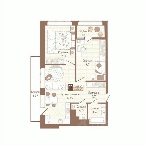 Продаётся 2-комнатная квартира в строящемся доме (Корпус 3), срок сдачи: IV-кв. 2025, общей площадью 58.32 кв.м., на 5 этаже. РАСПОЛОЖЕНИЕ