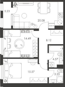 Продается 2-комн. квартира, 69,41 м²