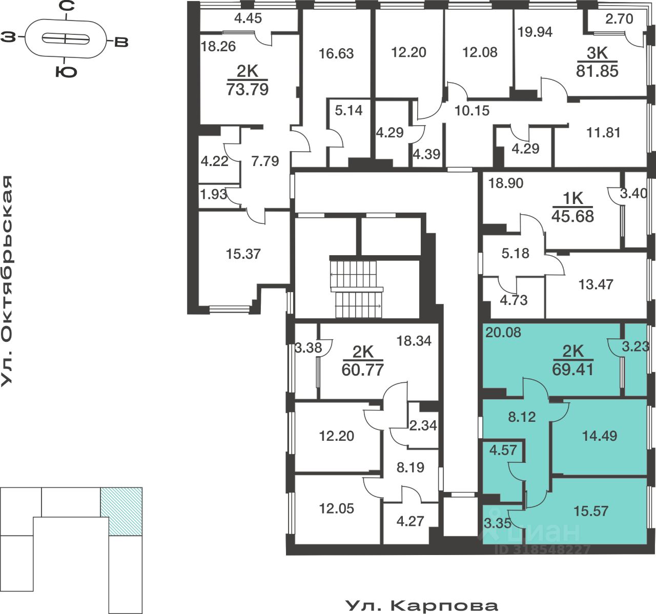 Общая площадь69,41 м²
