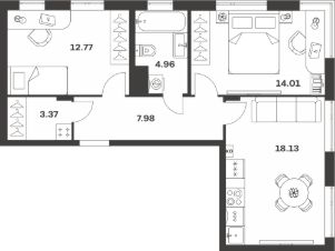 Продается 2-комн. квартира, 61,22 м²
