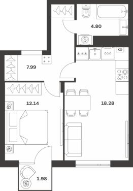 Продается 1-комн. квартира, 45,19 м²