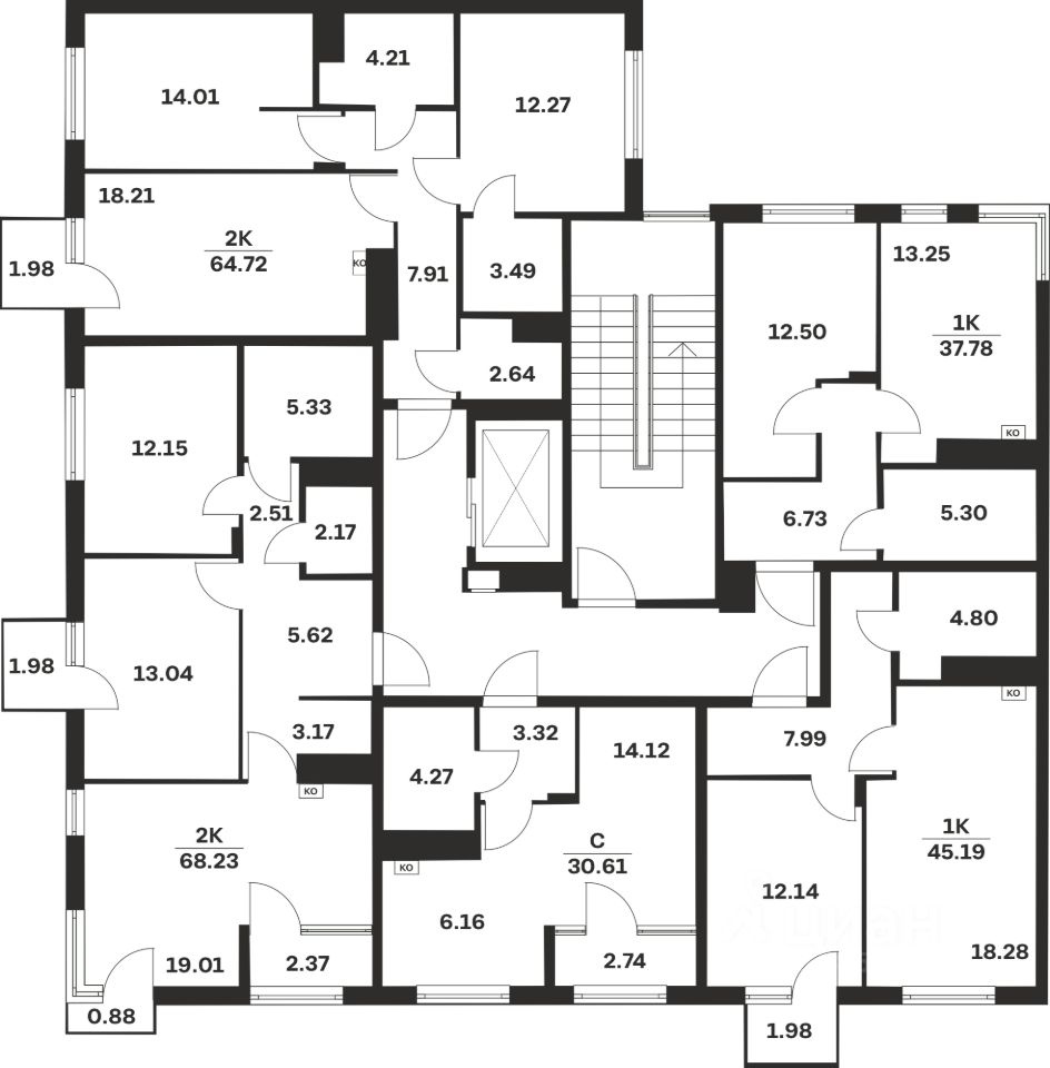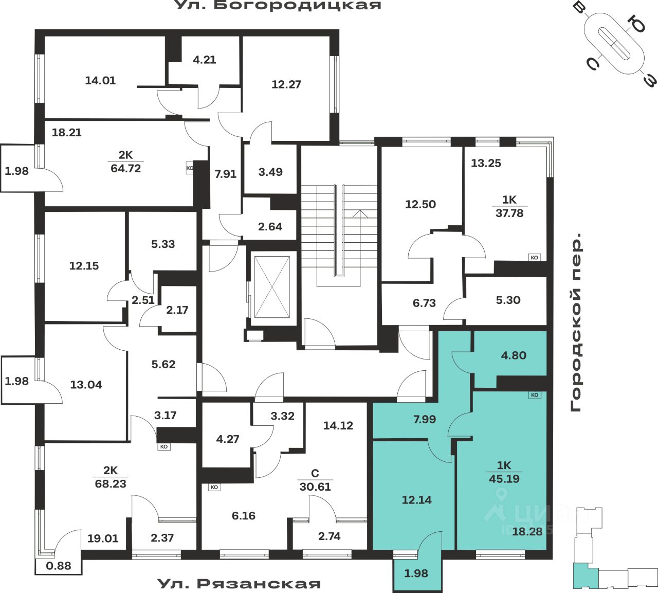 Общая площадь45,19 м²