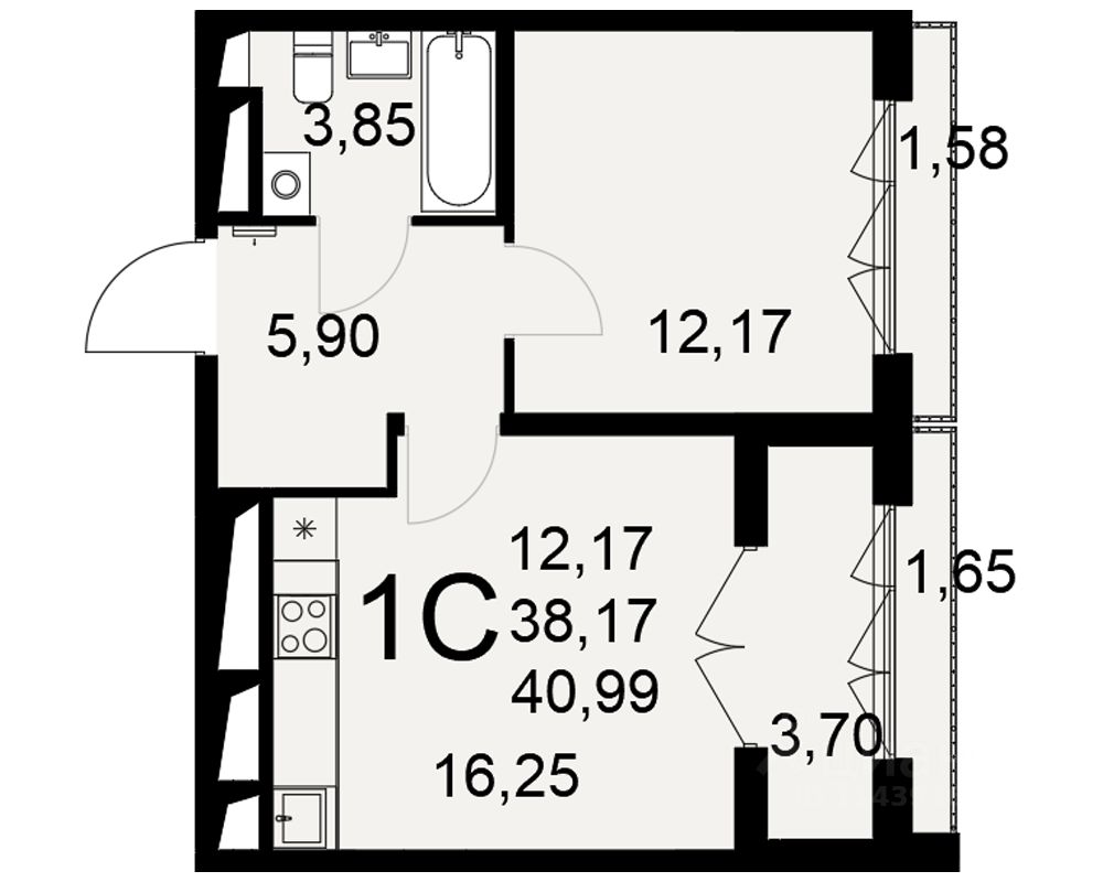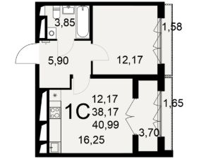 Общая площадь40,99 м²