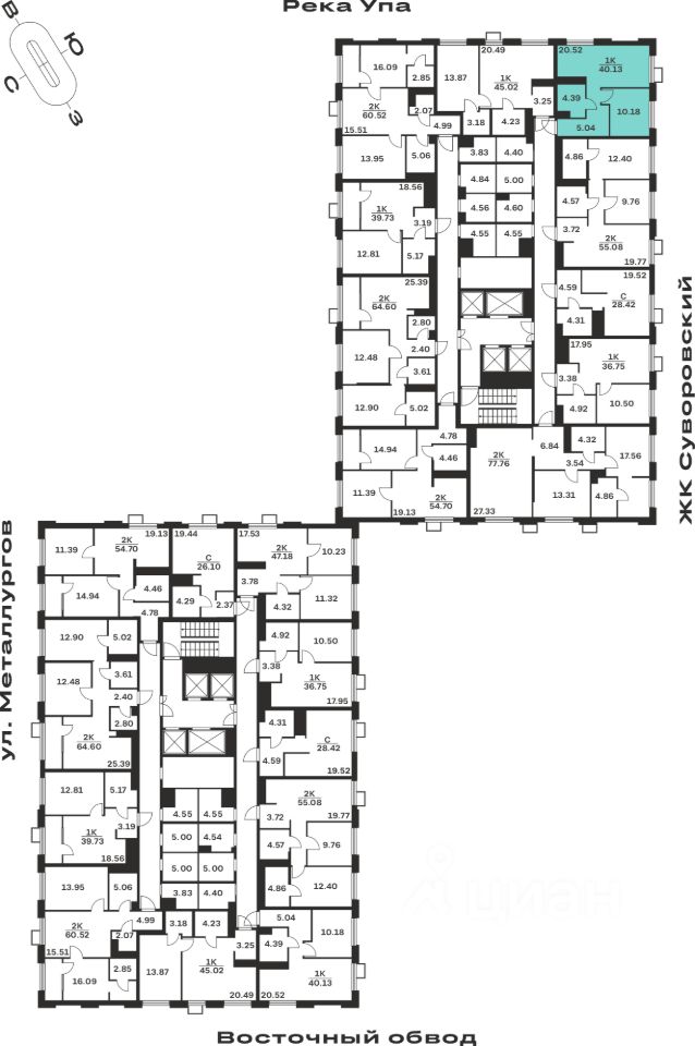 Общая площадь40,13 м²