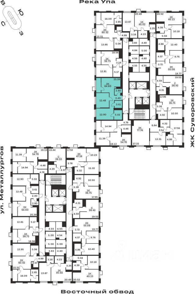 Общая площадь64,6 м²