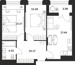 Продается 2-комн. квартира, 60,36 м²