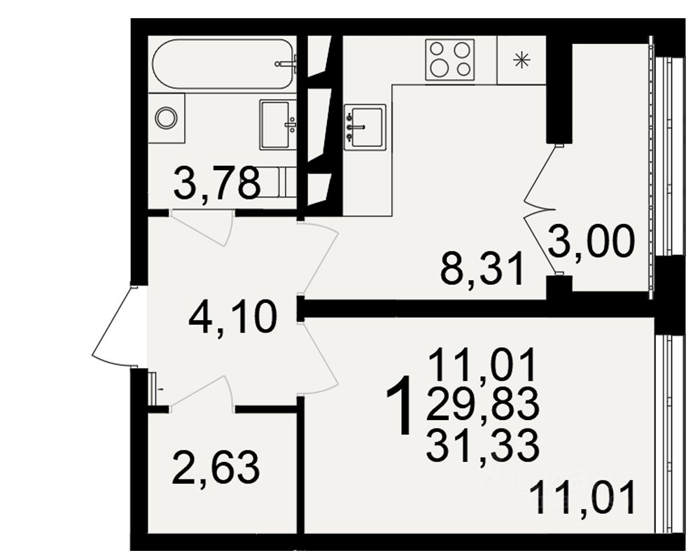 Продаётся 1-комнатная квартира в строящемся доме (Дом 6А ), срок сдачи: I-кв. 2026, общей площадью 29.83 кв.м., на 17 этаже. Жилой комплекс "Время" от застройщика "ЕДИНСТВО" в городе Тула.