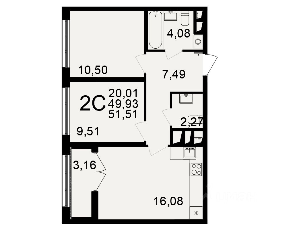 49,93 м²