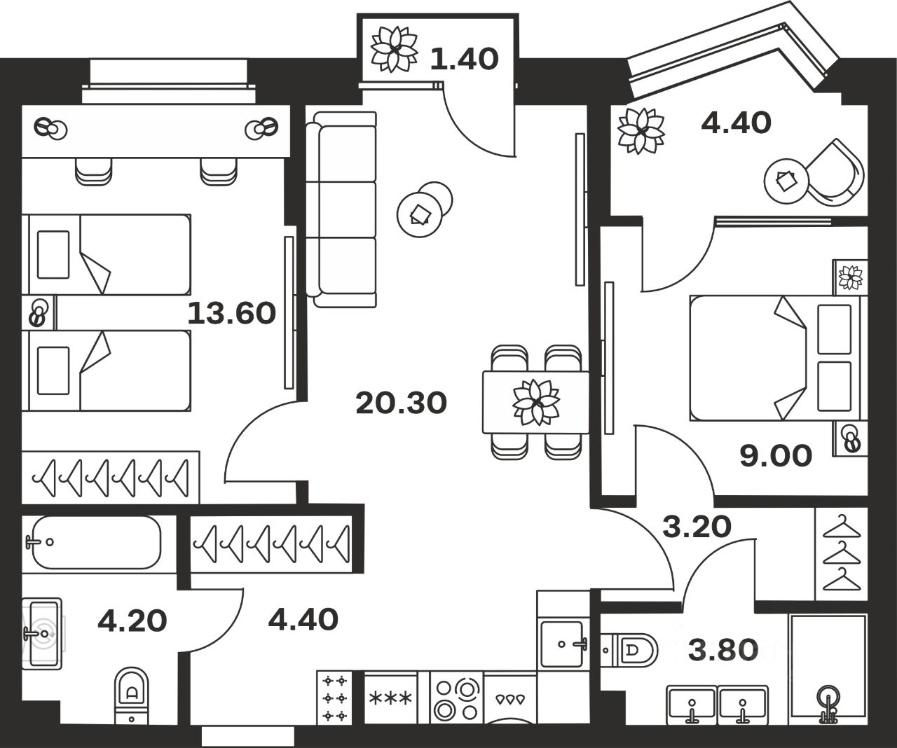 64,3 м²