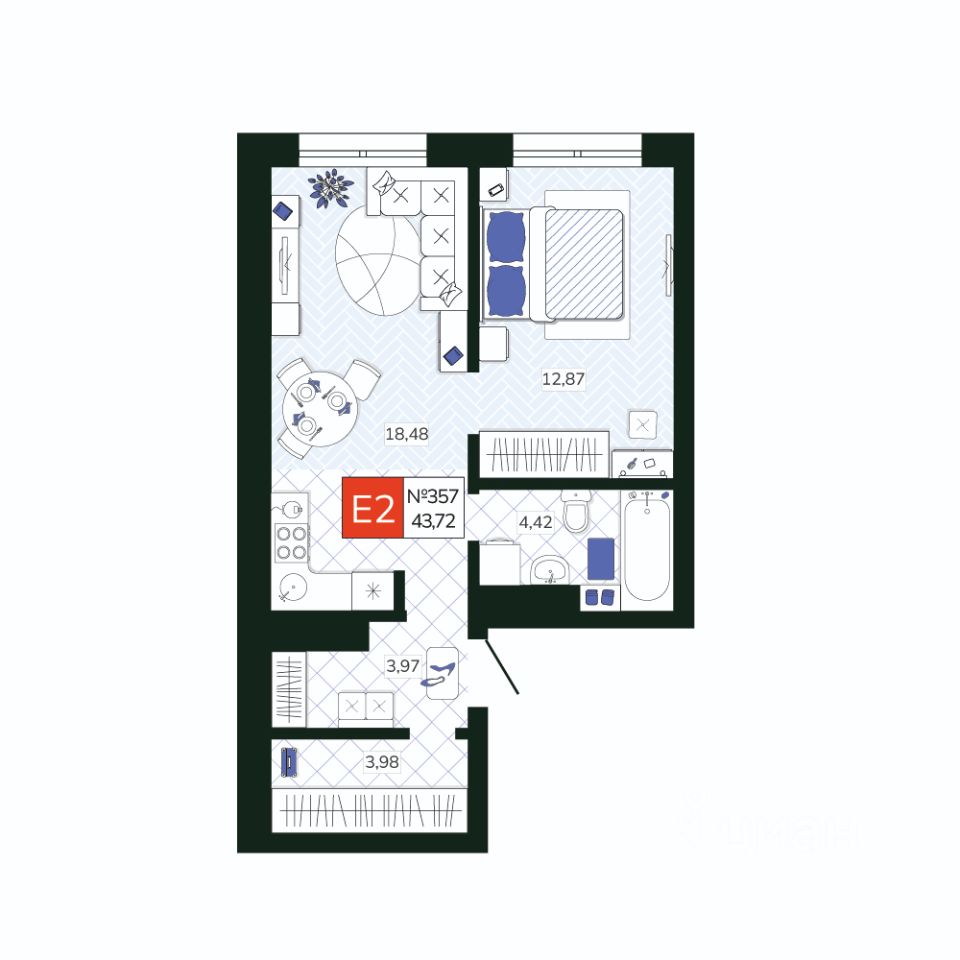 Квартира правильной геометрической формы позволяет функционально использовать все пространство. Потолки 2,72 м. Будет сдаваться с отделкой: