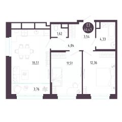 Продается 2-комн. квартира, 60,47 м²