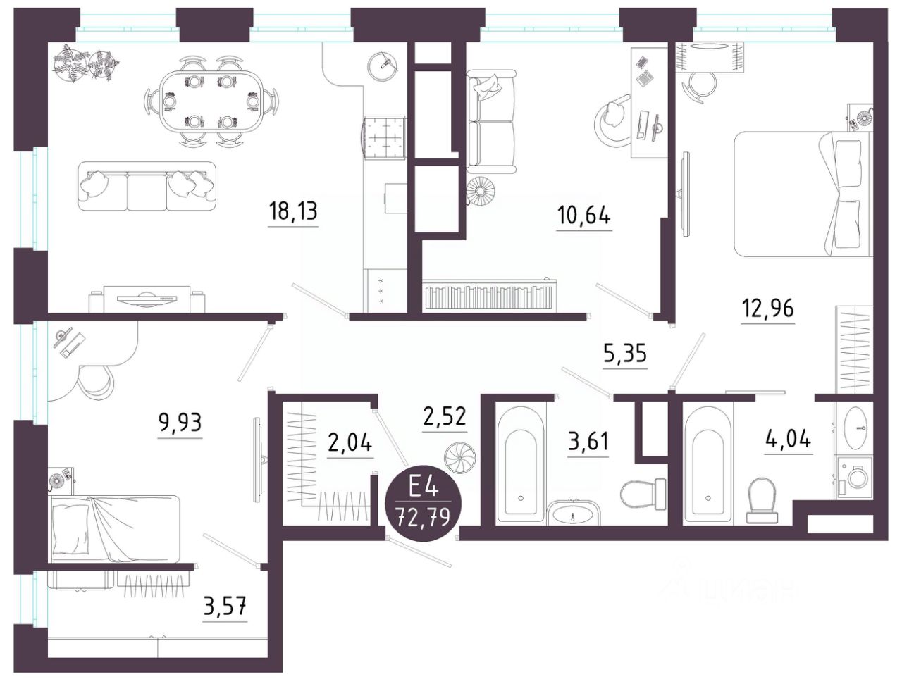 Общая площадь72,79 м²