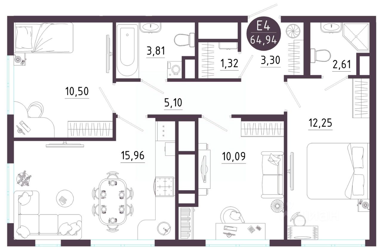 Общая площадь64,94 м²