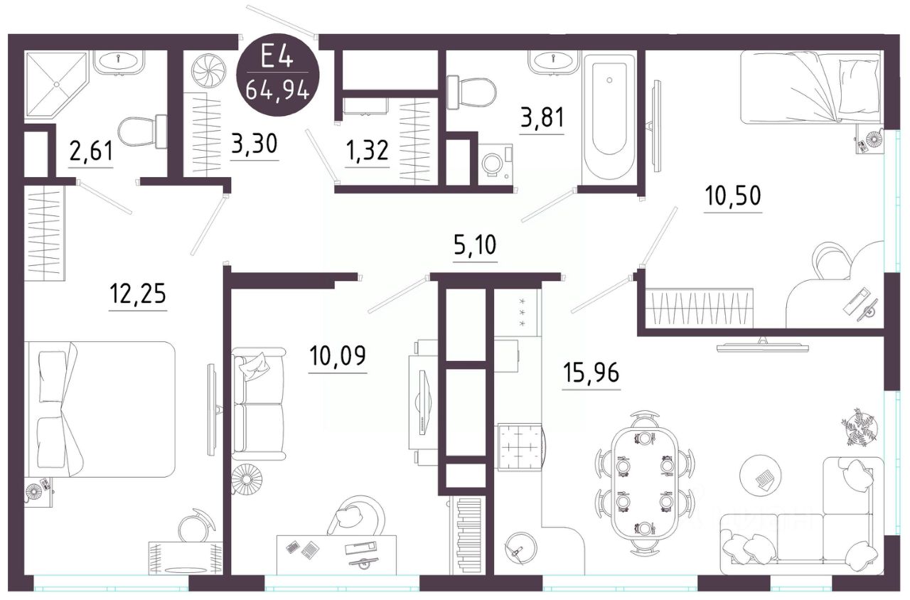 Общая площадь64,94 м²