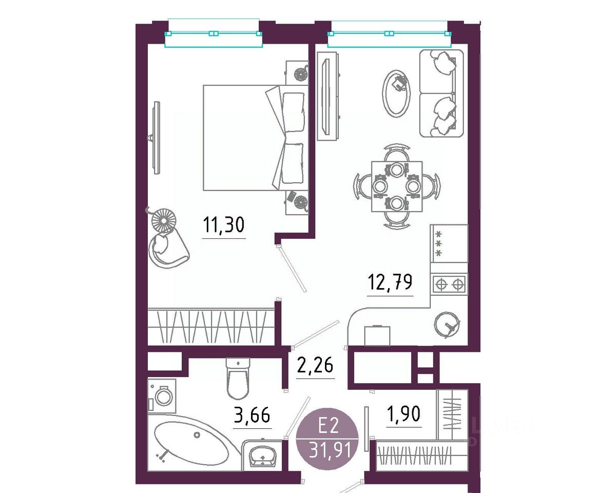Общая площадь31,91 м²