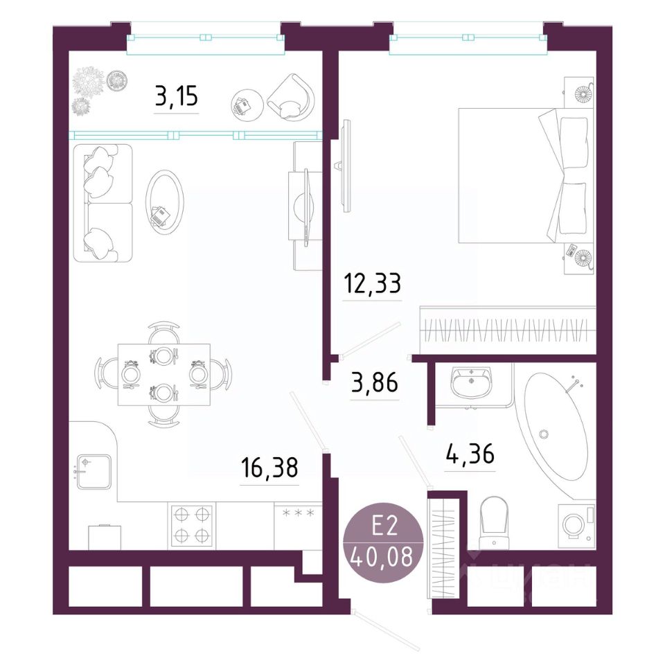 Общая площадь40,08 м²