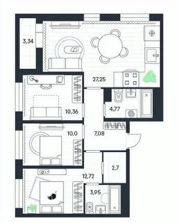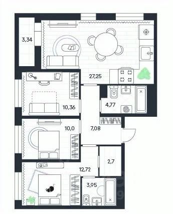 Продаётся 3-комнатная квартира в строящемся доме (4-я очередь), срок сдачи: III-кв. 2026, общей площадью 82.17 кв.м., на 13 этаже. Новый жилой дом от застройщика "ГК Стройальянс" расположен по адресу: Тульская область, Ленинский район, п. Петровский, Одоевское шоссе