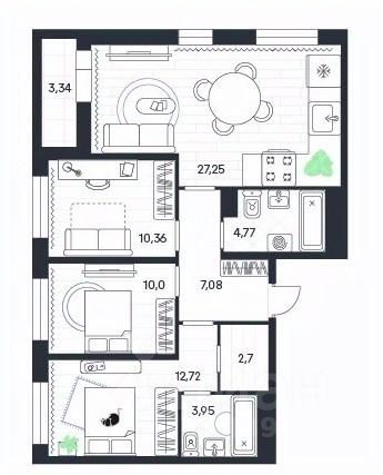 Продаётся 3-комнатная квартира в строящемся доме (4-я очередь), срок сдачи: III-кв. 2026, общей площадью 82.17 кв.м., на 14 этаже. Новый жилой дом от застройщика "ГК Стройальянс" расположен по адресу: Тульская область, Ленинский район, п. Петровский, Одоевское шоссе