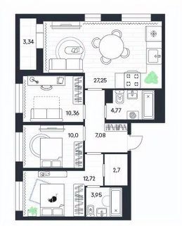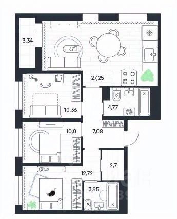 Продаётся 3-комнатная квартира в строящемся доме (4-я очередь), срок сдачи: III-кв. 2026, общей площадью 82.17 кв.м., на 17 этаже. Новый жилой дом от застройщика "ГК Стройальянс" расположен по адресу: Тульская область, Ленинский район, п. Петровский, Одоевское шоссе