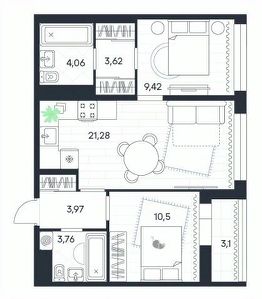 Продаётся 2-комнатная квартира в строящемся доме (4-я очередь), срок сдачи: III-кв. 2026, общей площадью 59.71 кв.м., на 4 этаже. Новый жилой дом от застройщика "ГК Стройальянс" расположен по адресу: Тульская область, Ленинский район, п. Петровский, Одоевское шоссе