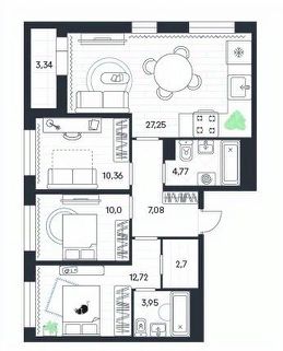 Продаётся 3-комнатная квартира в строящемся доме (4-я очередь), срок сдачи: III-кв. 2026, общей площадью 82.17 кв.м., на 6 этаже. Новый жилой дом от застройщика "ГК Стройальянс" расположен по адресу: Тульская область, Ленинский район, п. Петровский, Одоевское шоссе