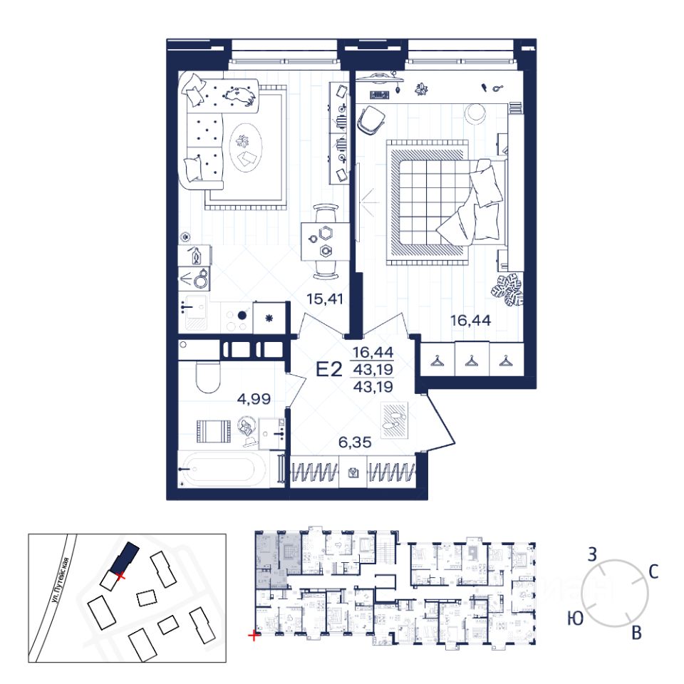 Общая площадь43,19 м²