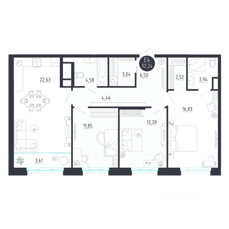 Продаётся 3-комнатная квартира в строящемся доме (Корпус 1), срок сдачи: IV-кв. 2028, общей площадью 92.24 кв.м., на 2 этаже. Новый жилой комплекс "LANGERHALL" от застройщика "ЦСМ" расположен по адресу: г. Тула, Оборонная улица