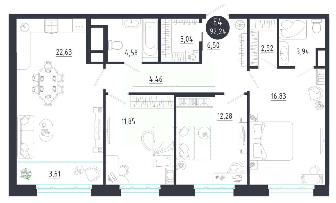 Продаётся 3-комнатная квартира в строящемся доме (Корпус 1), срок сдачи: IV-кв. 2028, общей площадью 92.24 кв.м., на 4 этаже. Новый жилой комплекс "LANGERHALL" от застройщика "ЦСМ" расположен по адресу: г. Тула, Оборонная улица