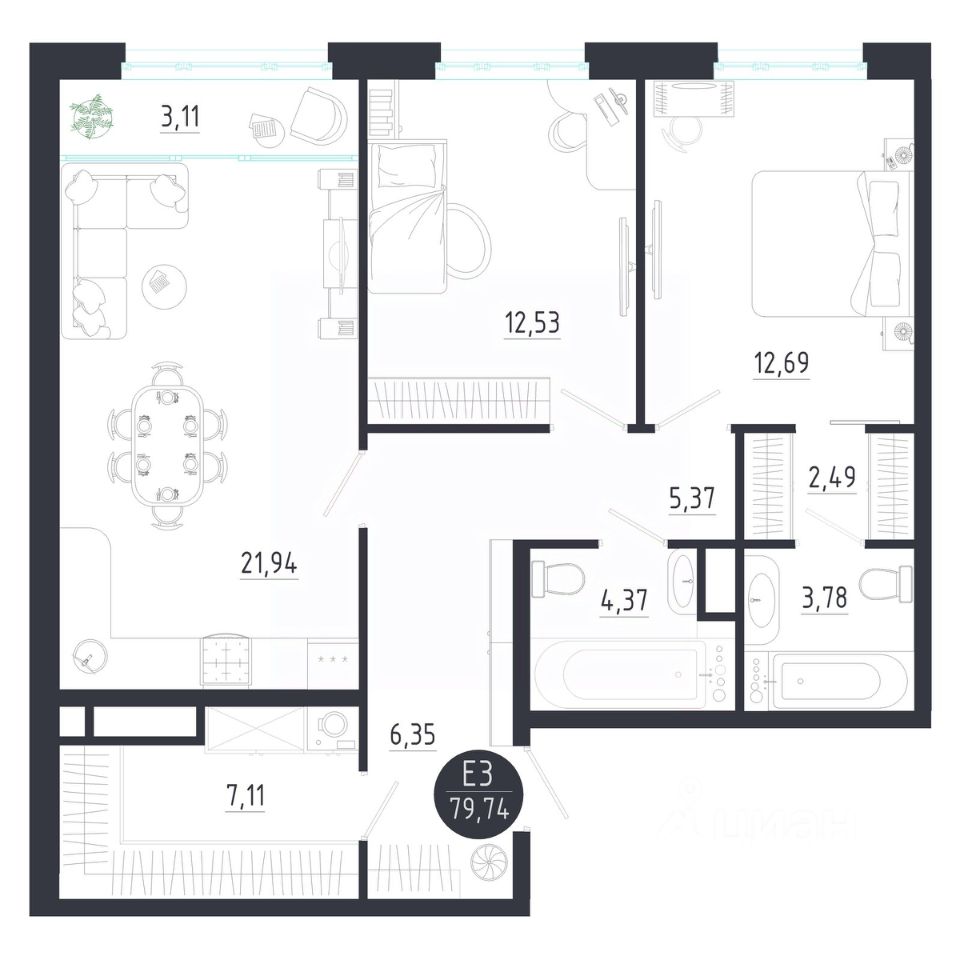 Продаётся 2-комнатная квартира в строящемся доме (Корпус 1), срок сдачи: IV-кв. 2028, общей площадью 79.74 кв.м., на 7 этаже. Новый жилой комплекс "LANGERHALL" от застройщика "ЦСМ" расположен по адресу: г. Тула, Оборонная улица