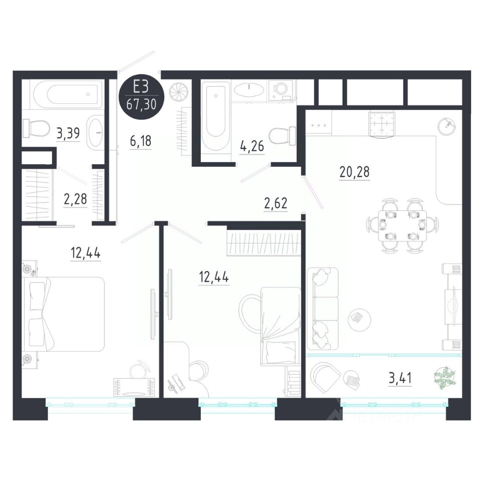 Продаётся 2-комнатная квартира в строящемся доме (Корпус 1), срок сдачи: IV-кв. 2028, общей площадью 67.3 кв.м., на 8 этаже. Новый жилой комплекс "LANGERHALL" от застройщика "ЦСМ" расположен по адресу: г. Тула, Оборонная улица