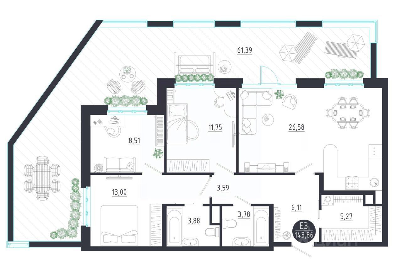 Продаётся 2-комнатная квартира в строящемся доме (Корпус 1), срок сдачи: IV-кв. 2028, общей площадью 143.86 кв.м., на 1 этаже. Новый жилой комплекс "LANGERHALL" от застройщика "ЦСМ" расположен по адресу: г. Тула, Оборонная улица