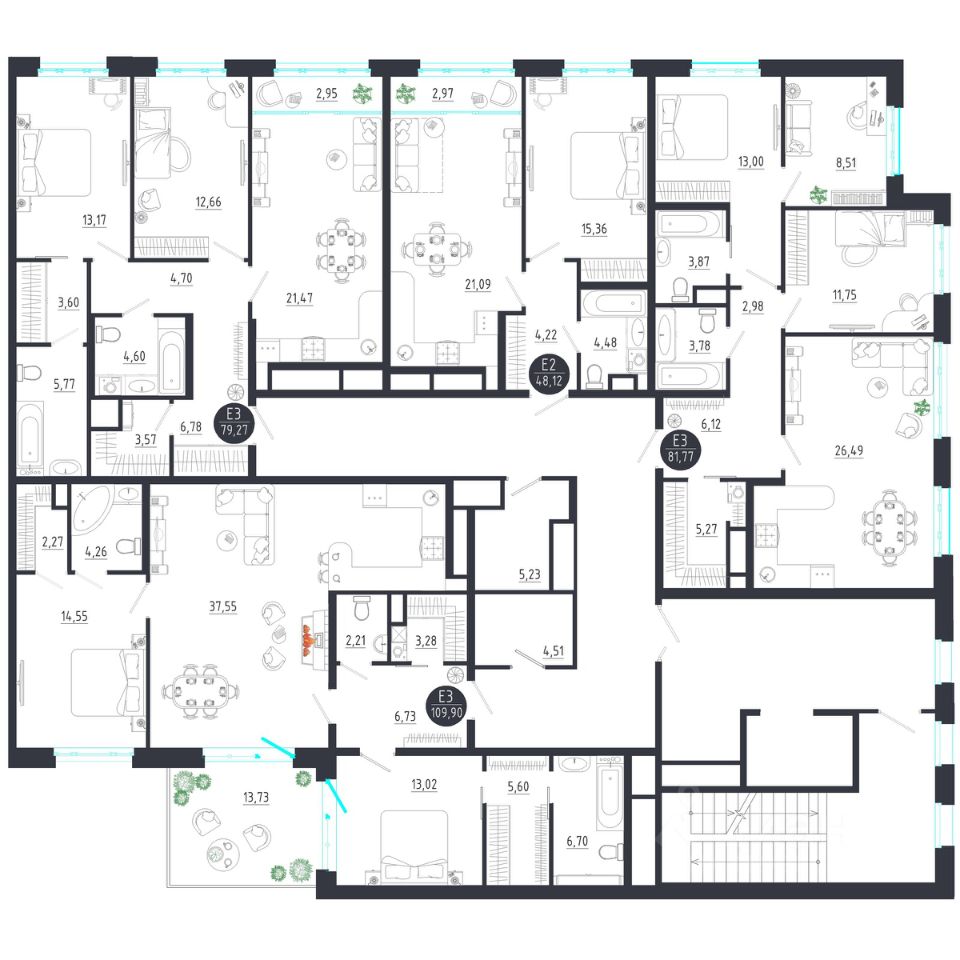 Продаётся 2-комнатная квартира в строящемся доме (Корпус 1), срок сдачи: IV-кв. 2028, общей площадью 81.77 кв.м., на 2 этаже. Новый жилой комплекс "LANGERHALL" от застройщика "ЦСМ" расположен по адресу: г. Тула, Оборонная улица